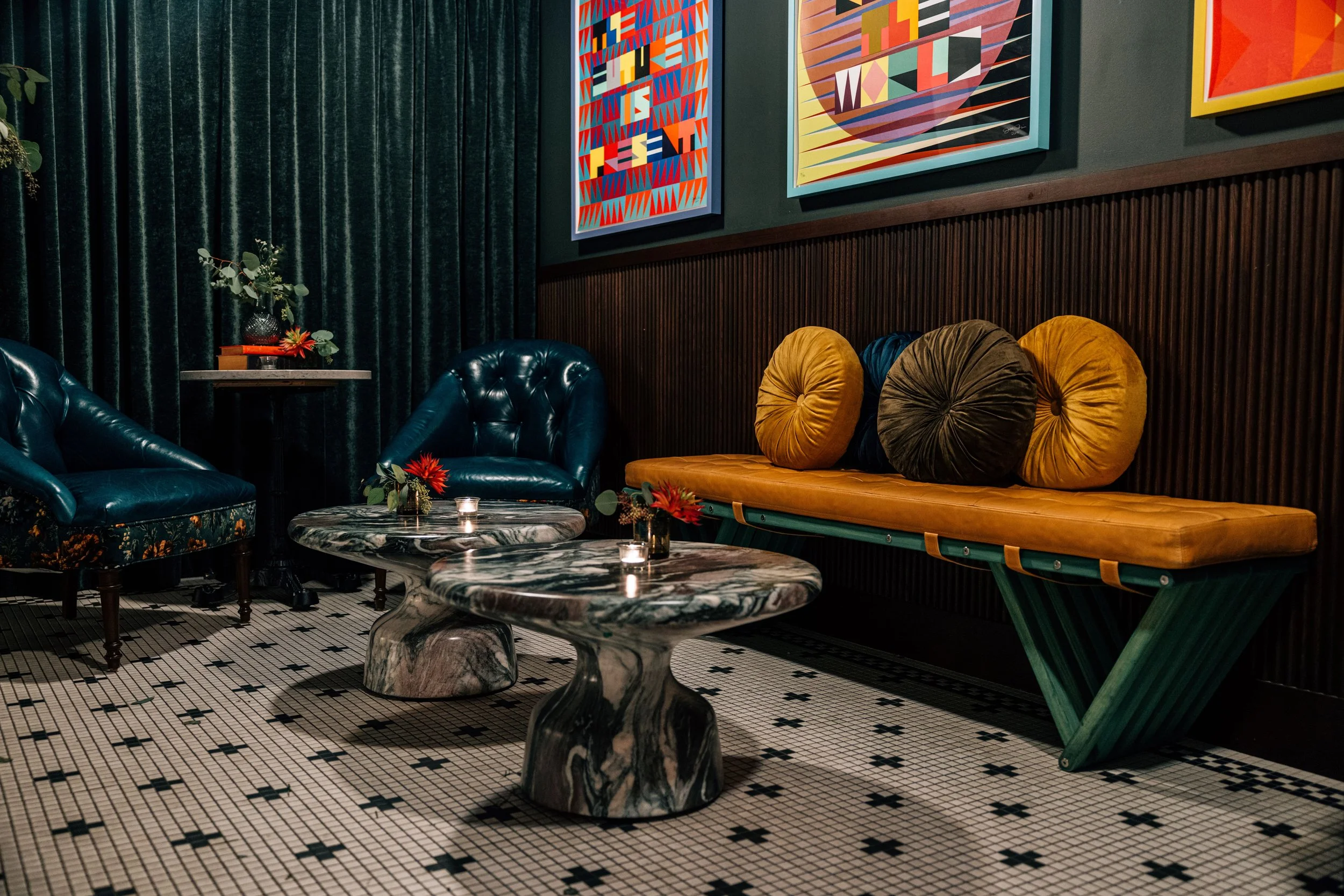 Nestled within the historic Massey Hotel building in Bentonville, Arkansas, Lady Slipper transports guests to a bygone era. Stepping into the space, one is immediately drawn to the incredible art adorning the walls, showcasing a mix of contemporary pieces that create a truly captivating atmosphere. The speakeasy vibes are palpable, as dim lighting casts a warm glow on plush velvet seating, inviting patrons to sit back and unwind. Art deco flourishes add a touch of sophistication, with geometric patterns and luxurious materials interwoven throughout the space. Surprising details catch the eye at every turn.